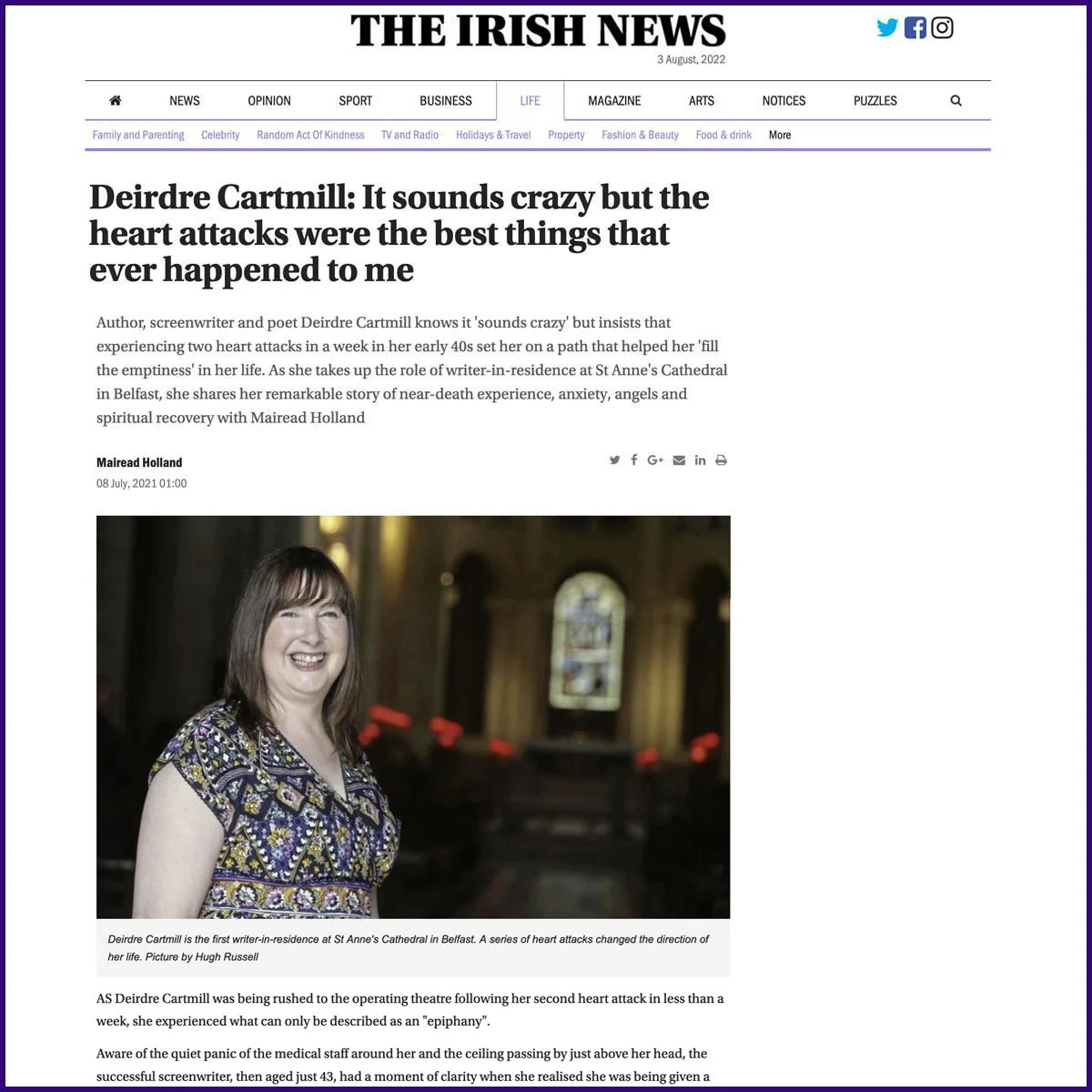 In this feature in the Irish News I talk about how my heart attacks set me on my spiritual path, and how we all need to practice self love and self care.